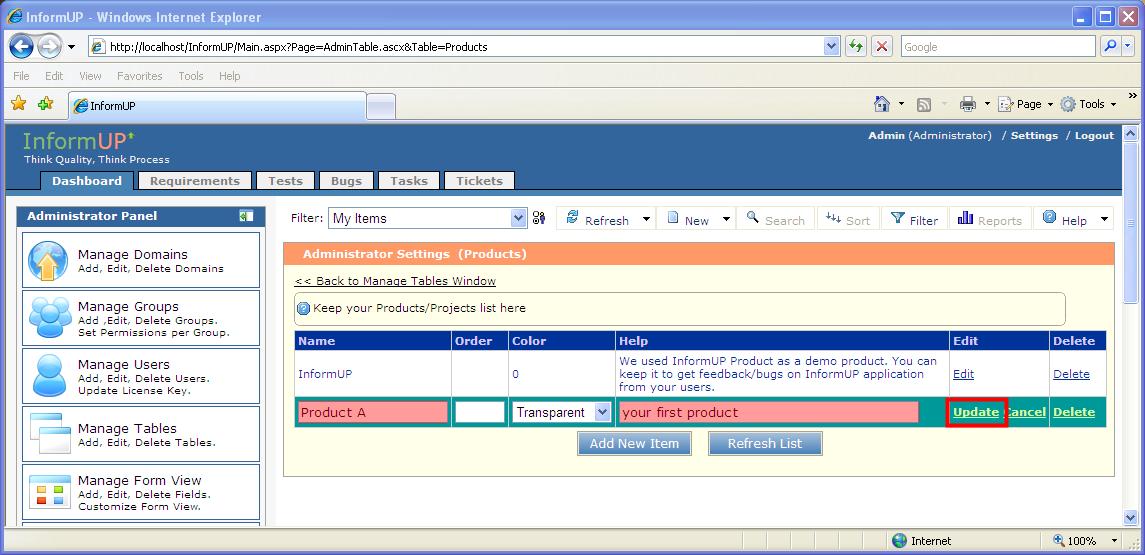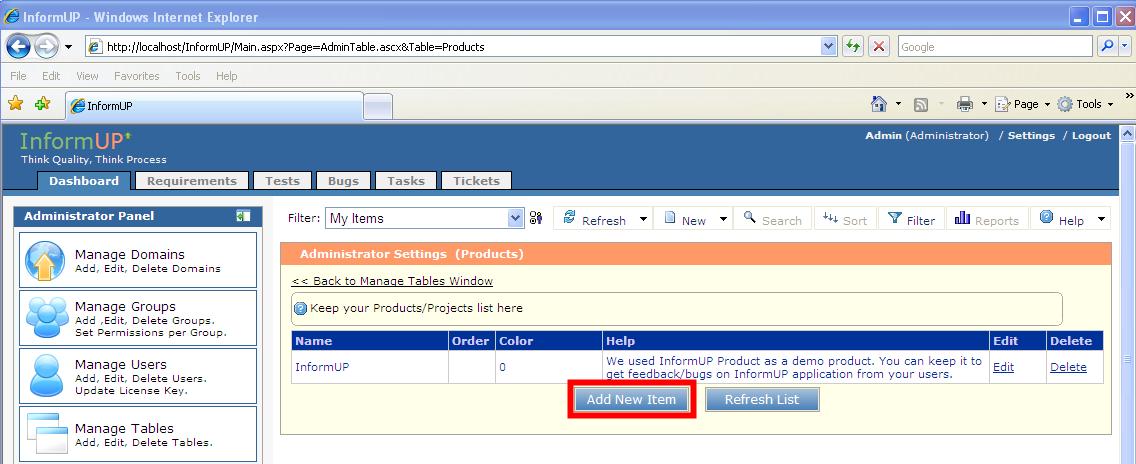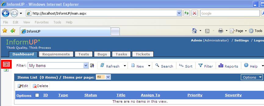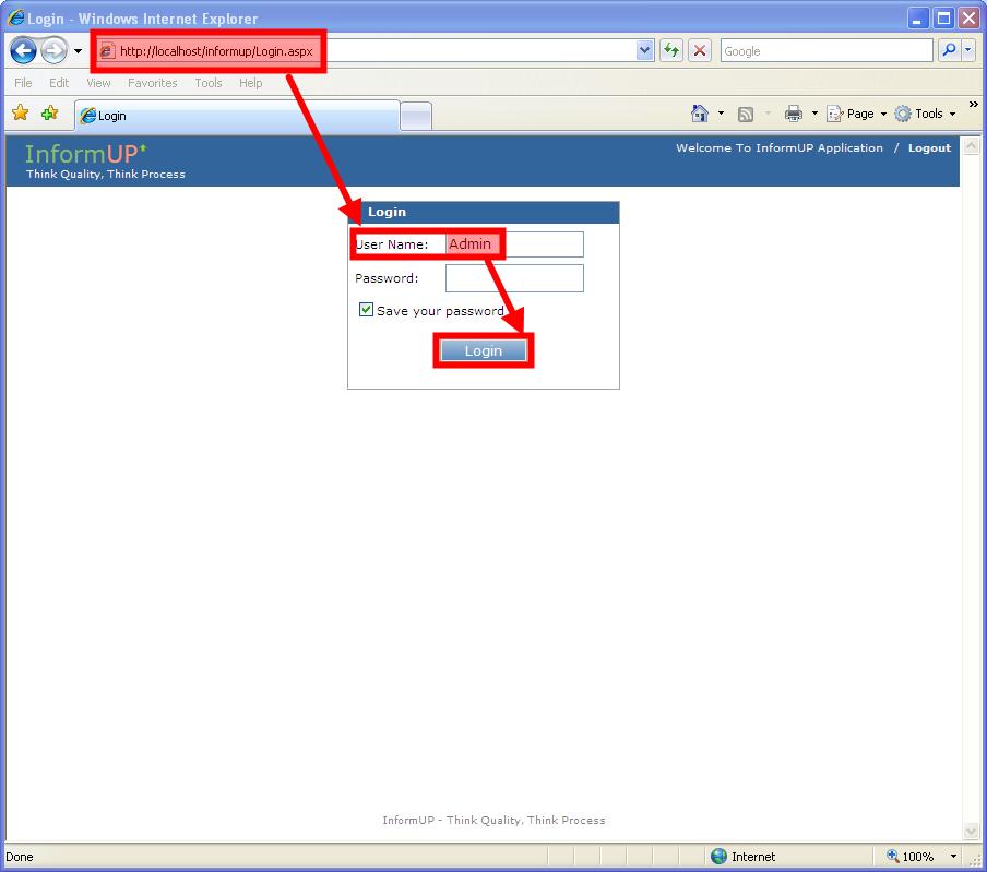 Step 1: Login as Admin user. 1. Browse to InformUp login page (http://localhost/InformUp)